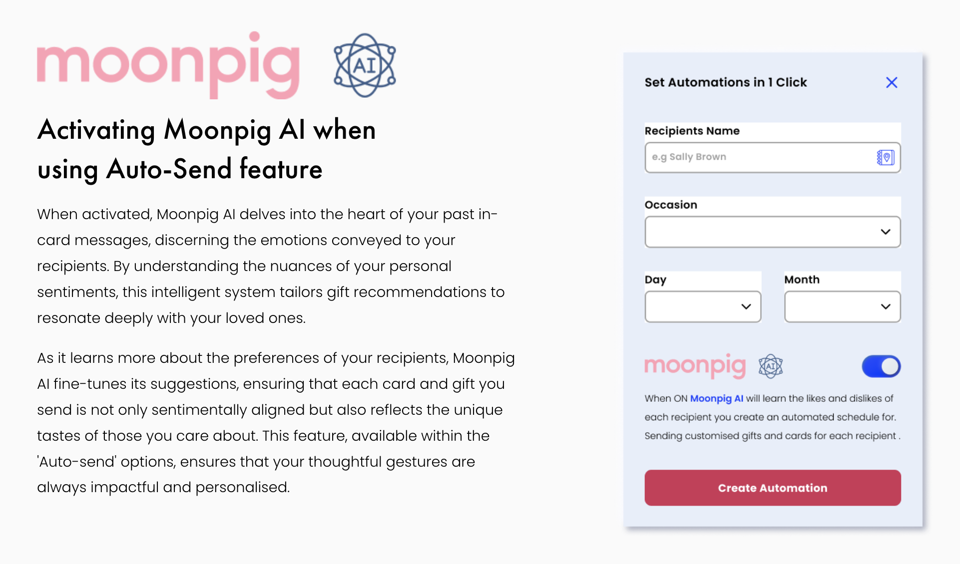 A suite of innovative features that leverage cutting-edge AI technologies to propel Moonpig to the forefront of the online gifting industry.